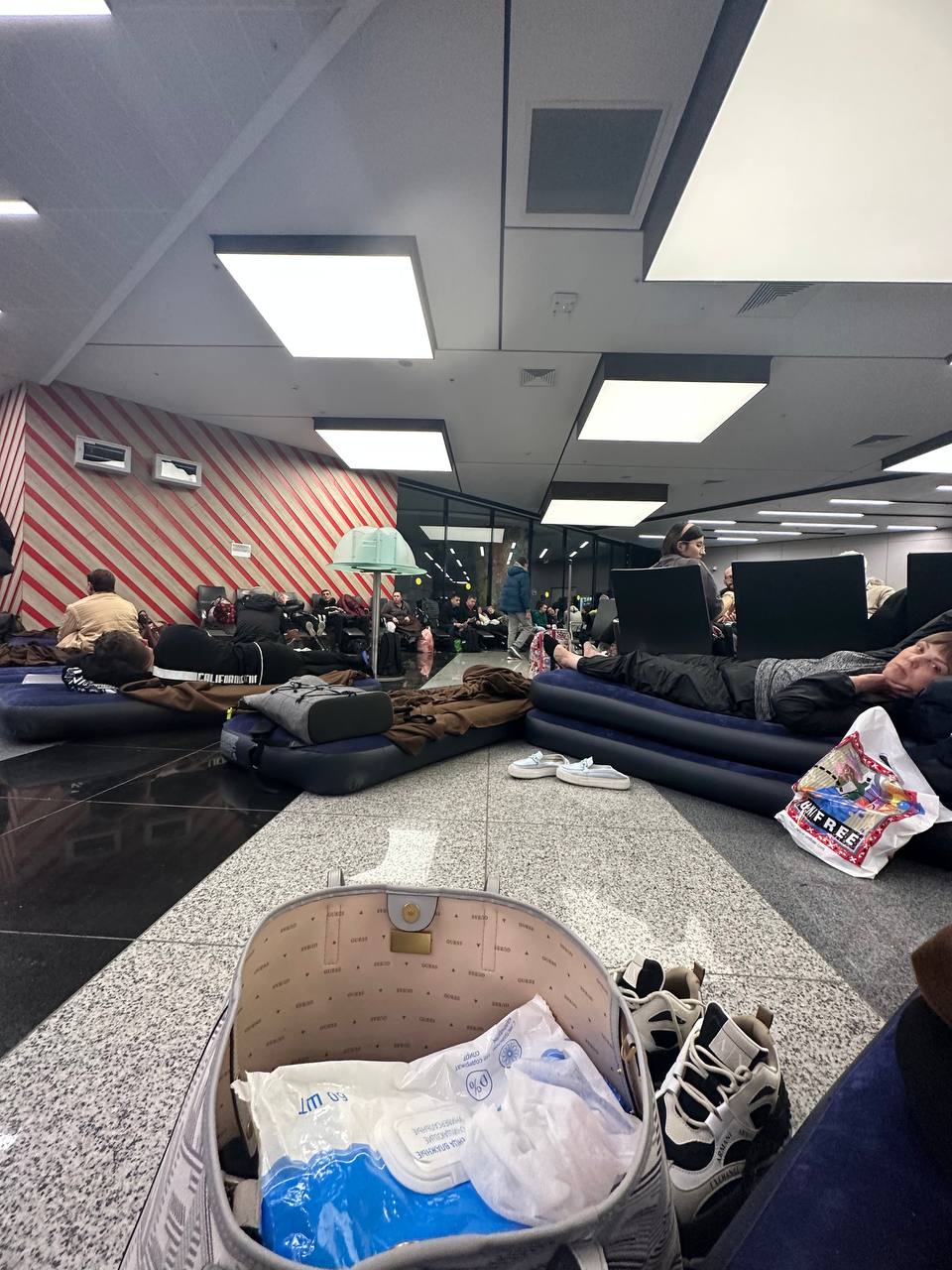 Украинка Людмила делится лайфхаком: "Когда заберут анкету с телефоном, идите в дальний зал, где надувные матрасы и ложитесь спать часов на 8 точно. Реально нет смысла сидеть в зоне кабинетов, где вызывают на интервью. Пледы есть, подушка может пригодиться".