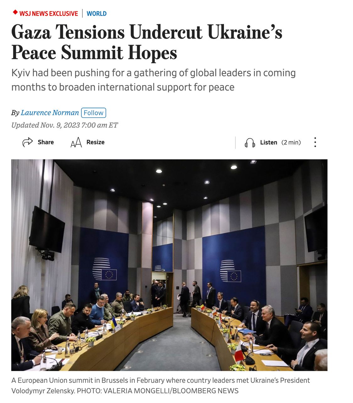 15.20 Война Израиля с ХАМАС "подрывает надежды Украины на мирный саммит", пишет The Wall Street Journal.