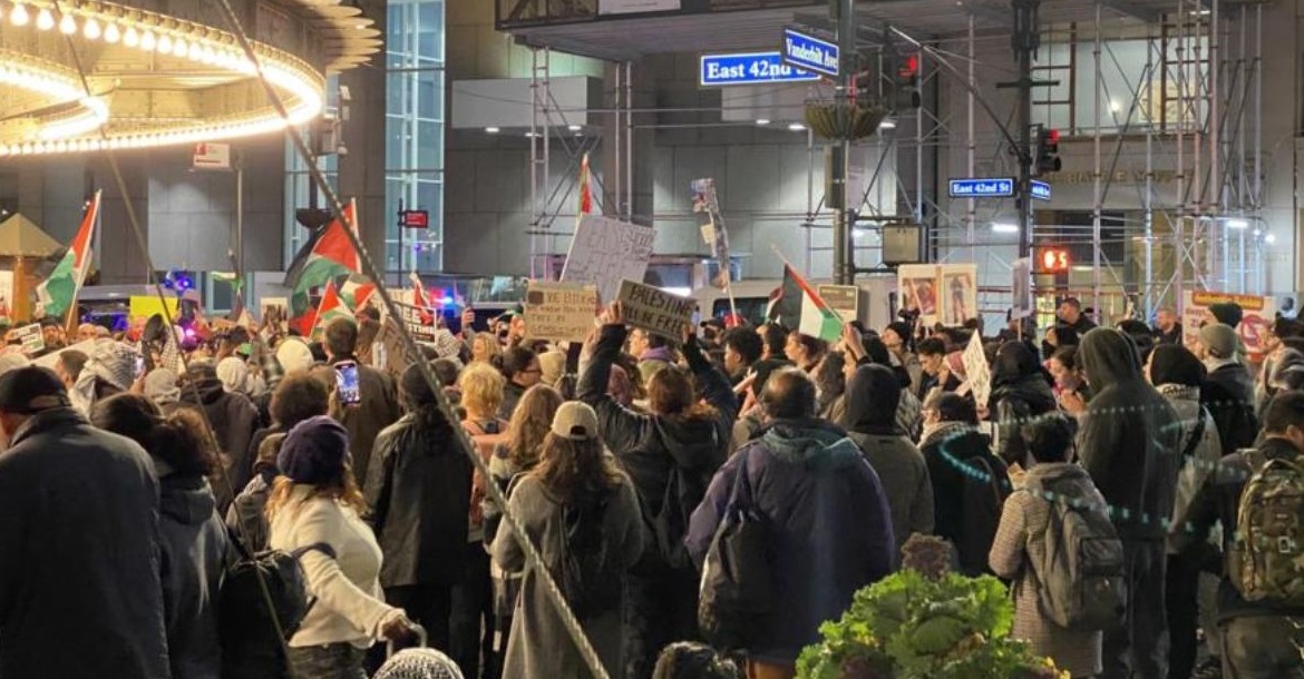 7.00 Несколько сотен человек собрались у Центрального вокзала в Нью-Йорке для участия в акции с призывом к прекращению огня в секторе Газа.