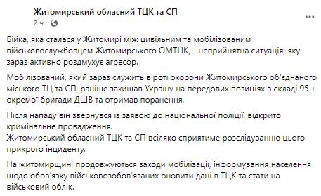Полиция открыла уголовное дело по факту драки мужчины с военкомом в Житомире.