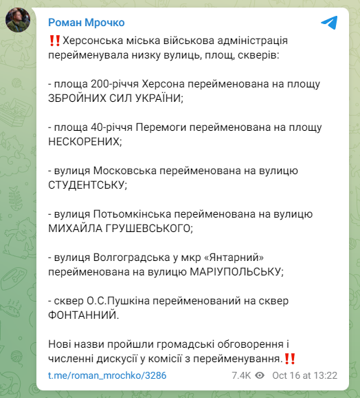 - площадь 200-летия Херсона стала площадью Вооруженных сил Украины;