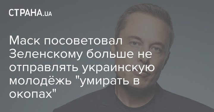 Маск посоветовал Зеленскому больше не отправлять украинскую молодёжь "умирать в окопах"