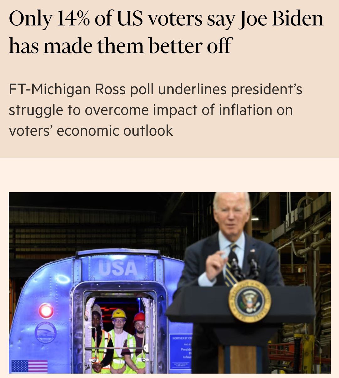 Лишь 14 процентов американских избирателей считают, что их финансовое положение улучшилось при Байдене - FT