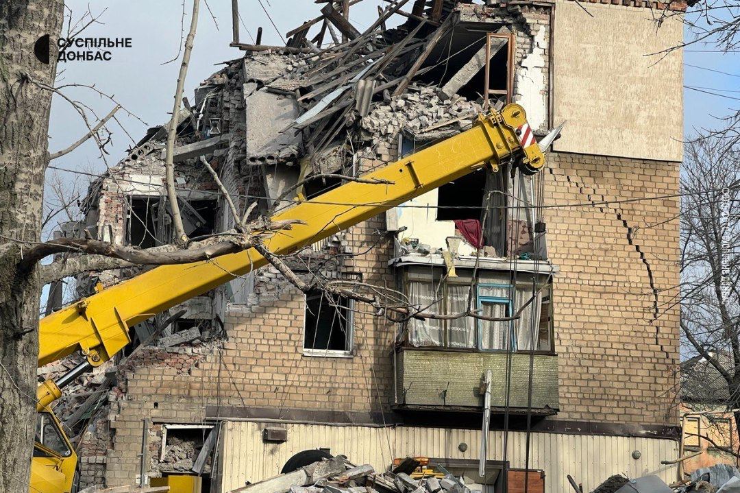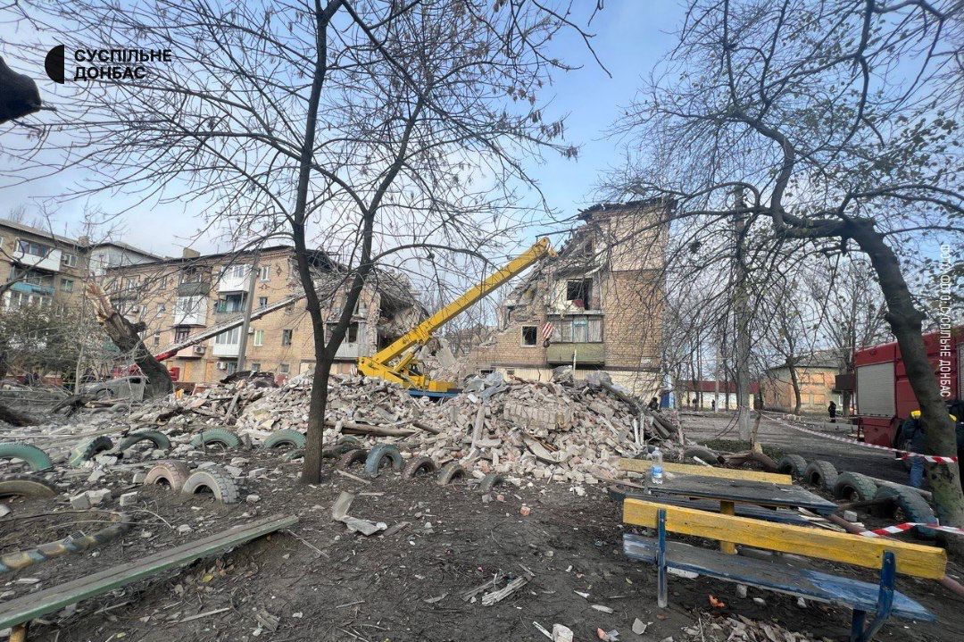 Появились новые фото из Селидово Донецкой области, где после ракетного удара РФ ночью частично обрушился 4-этажный дом.