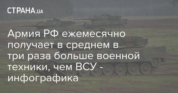 Армия РФ ежемесячно получает в среднем в три раза больше военной техники, чем ВСУ - инфографика