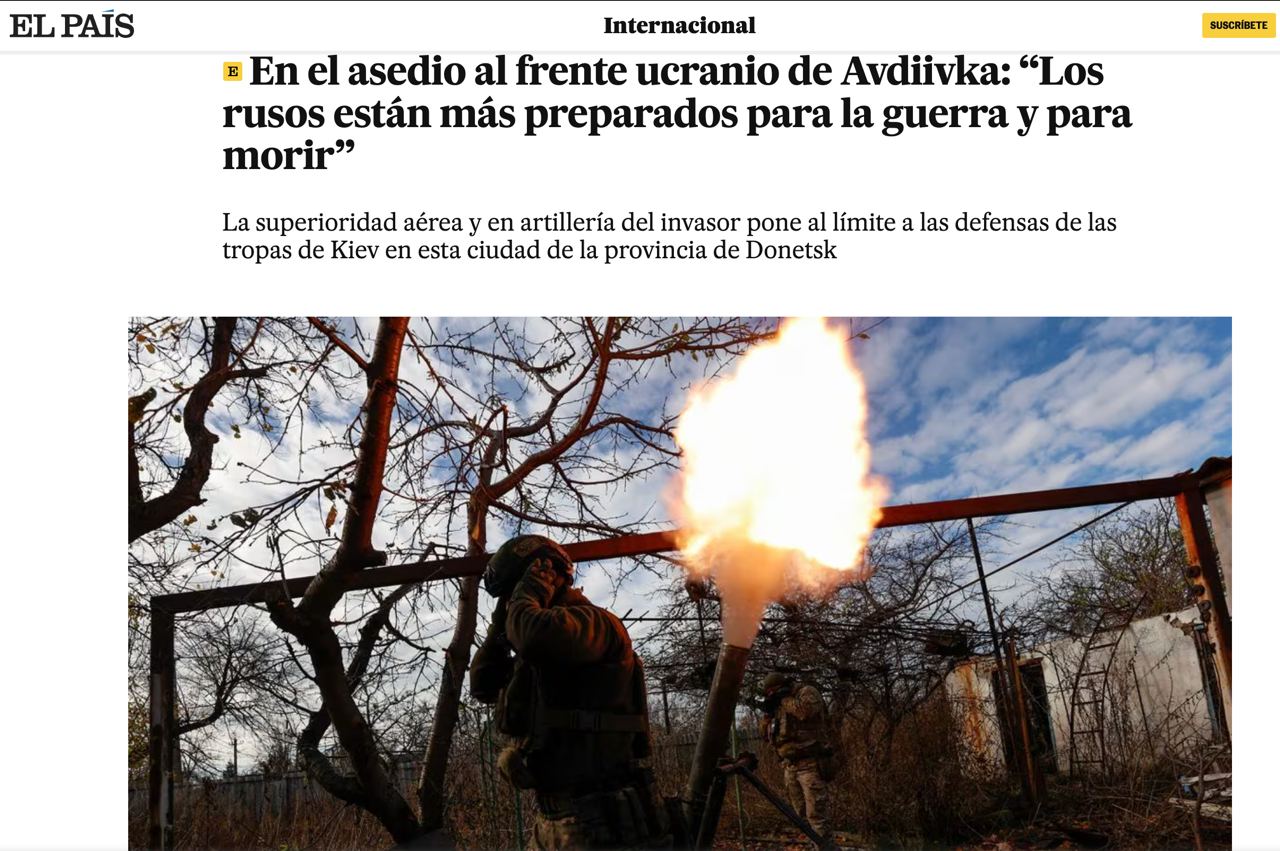 Как и Bild, El Pais указывает на то, что самая большая опасность под Авдеевкой сейчас - продвижение россиян к западу от железной дороги на севере от города. ВСУ защищают дорогу на возвышении, но армия РФ уже получила доступ к трехкилометровому участку.