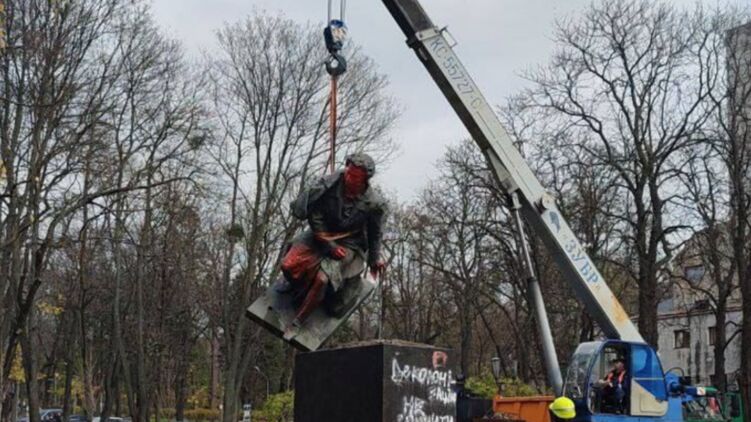 Демонтаж памятника Пушкину в Киеве. Фото: Facebook