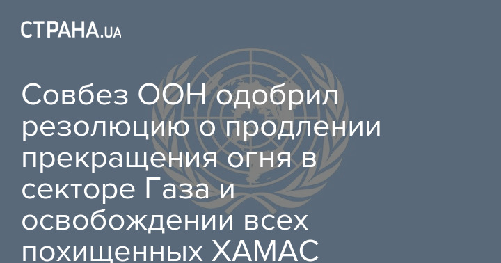 Совет безопасности Организации Объединенных Наций (ООН) одобрил резолюцию о продлении режима прекращения огня по гуманитарным соображениям и освобождении всех похищенных.