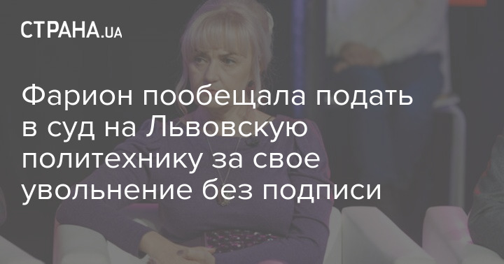 Экс-нардеп от партии "Свобода" Ирина Фарион заявила, что подаст в суд на Национальный университет "Львовская политехника" за свое увольнение.