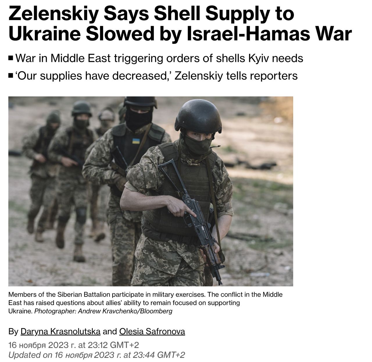 "Сейчас я сосредоточен на получении помощи от Запада. Их фокус смещается из-за Ближнего Востока и других причин. Без поддержки мы отступим (move backward)", - заявил президент Украины, чьи слова приводит Bloomberg.