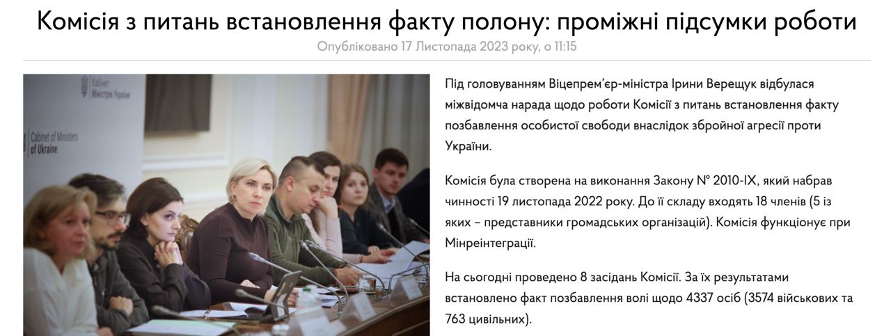 По официальным данным Кабмина, в российском плену были или находятся до сих пор 4 337 украинцев: 3 574 военных и 763 гражданских.