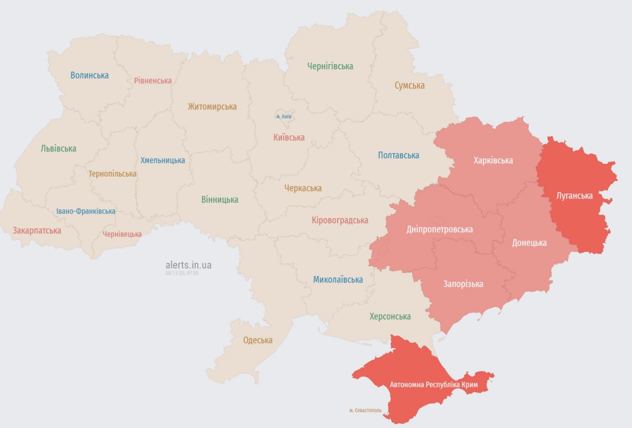 08:55 Угроза ракетного удара в областях, где объявлена тревога.