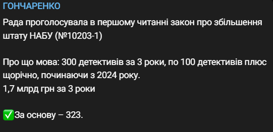 За основу был проголосован в первом чтении правительственный законопроект об увеличении штата НАБУ (№10203-1).