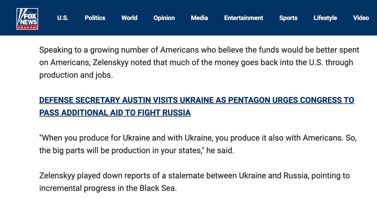 Президент Владимир Зеленский аргументировал для американцев необходимость продолжать оказывать помощь Украине тем, что большая часть этих денег возвращается в США через производство и рабочие места.
