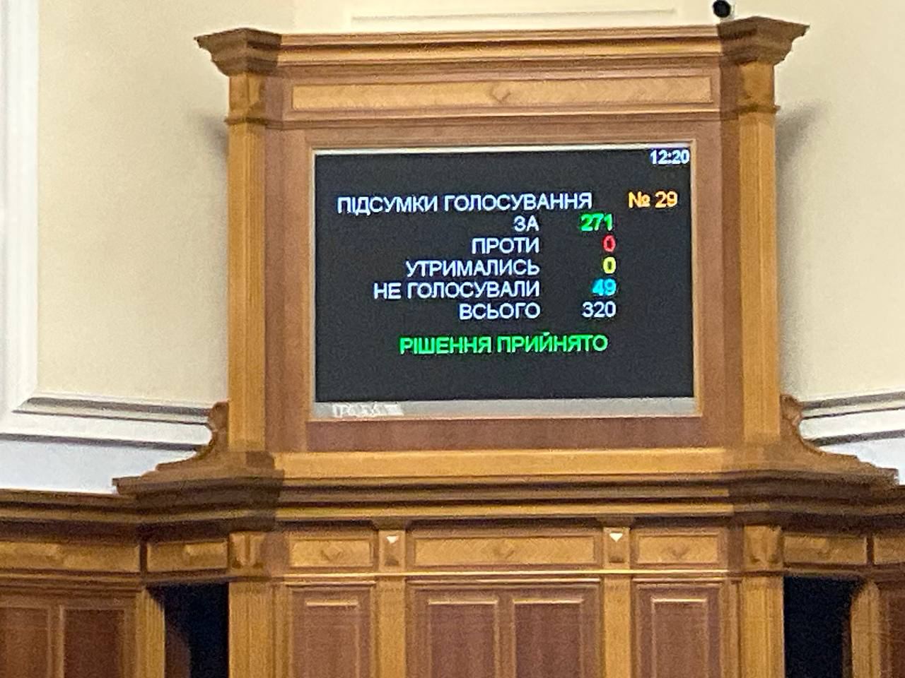 За соответствующий законопроект в Раде проголосовал 271 депутат.