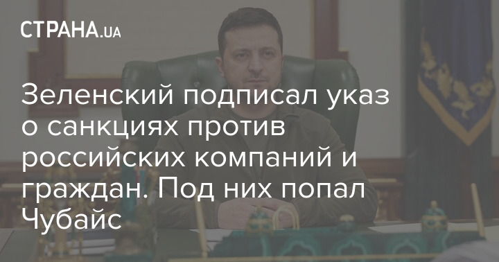 Зеленский подписал указ о санкциях против российских компаний и граждан. Под них попал Чубайс