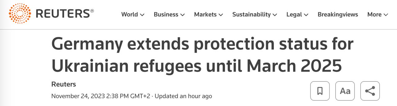 Германия продлила защиту украинских беженцев до марта 2025 года - Reuters