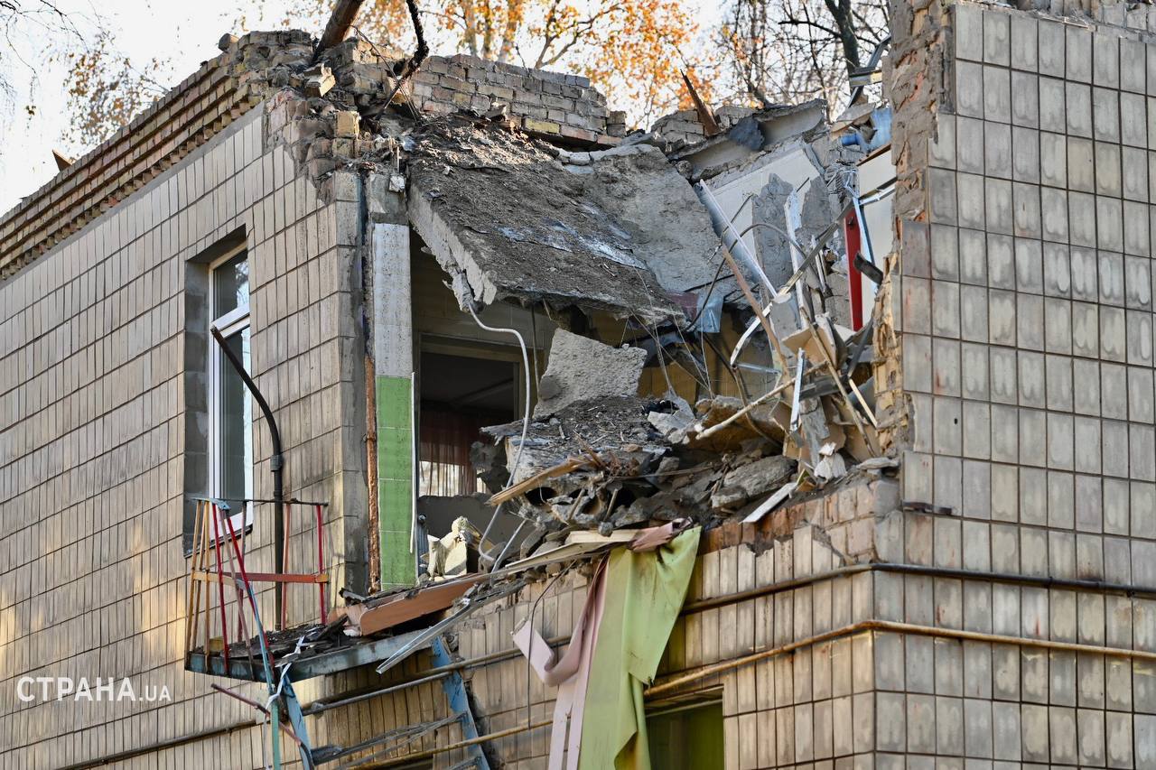 В Соломенском районе из-за падения обломков дрона загорелся детский сад и пострадала пятиэтажка.