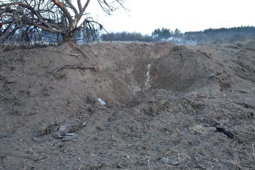 08:38 Воронка на месте падения "Шахеда" в Черкасской области. Власти сообщают об ущербе для близлежащих домов.
