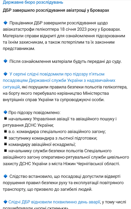 Также ГБР публиковало переговоры пилотов вертолета незадолго до крушения в Броварах.