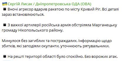 Во вторник, 28 ноября, стало известно, что ночью РФ нанесла ракетный удар по Кривому Рогу.