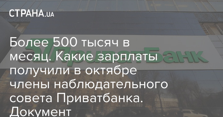 Члены наблюдательного совета национализированного Приватбанка получили заработные платы в размере от 565 до 580 тысяч гривен в октябре.
