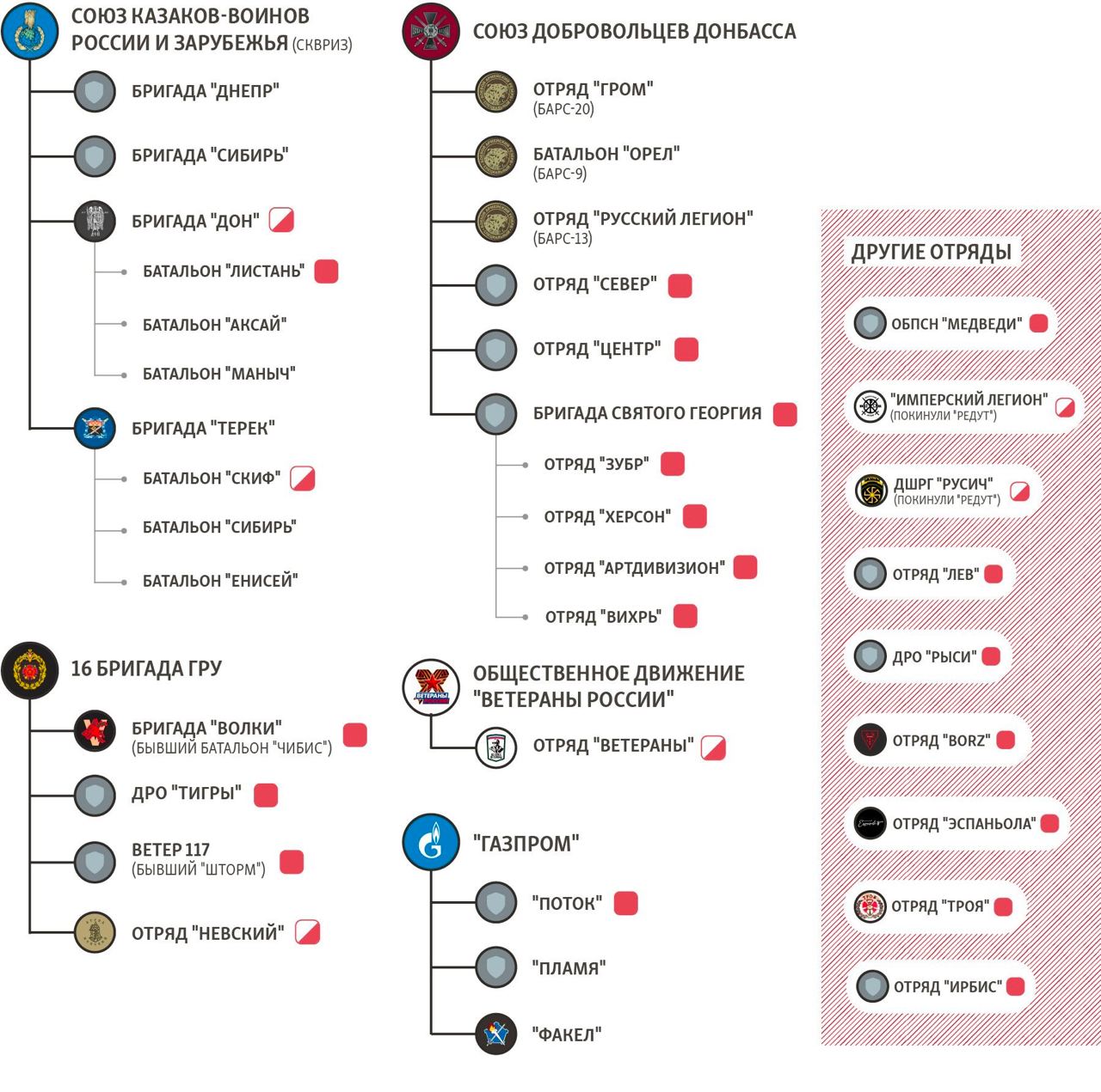Ранее компания была "связана с деятельностью в Сирии", но с началом вторжения РФ в Украину "начала вести боевые действия в Украине, вблизи Чернобыльской АЭС и Харькова, проводила разведывательную деятельность перед вторжением", а также "была связана с покушениями на убийство Зеленского". Кроме того, ее бойцы воевали в Донецкой и Луганской областях.