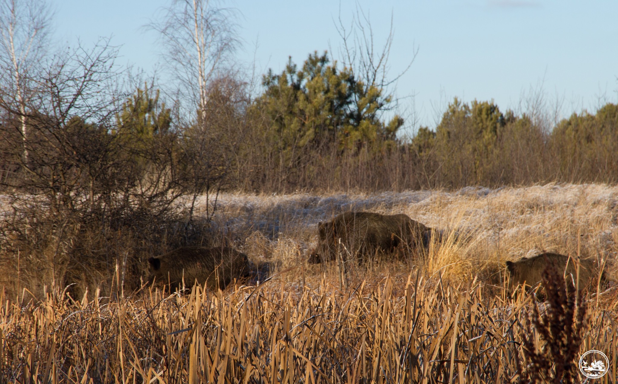В начале зимы кабаны продолжают накапливать подкожный жир. Среди густых трав заповедника, особенно под дичками фруктовых деревьев, они всегда могут поживиться чем-нибудь полезным и вкусным.
