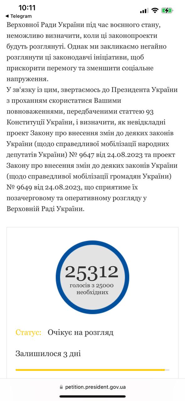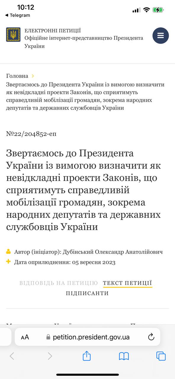 Тем временем петиция Дубинского о мобилизации нардепов и чиновников на сайте президента набрала 25 тысяч голосов. Теперь ее должен рассмотреть президент Владимир Зеленский и ответить на нее.