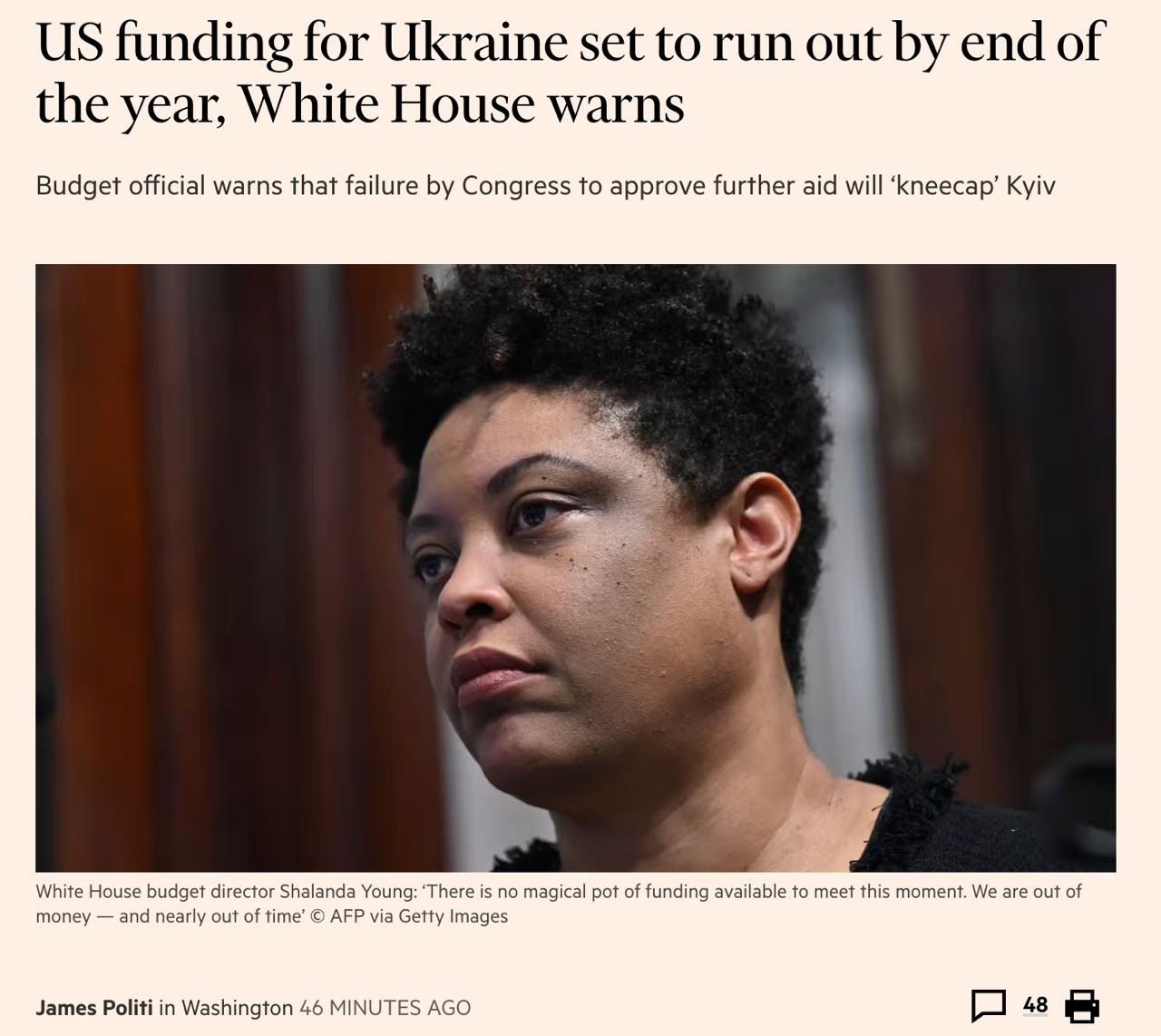 12.51 У США до конца года закончатся средства для финансирования Украины, если Конгресс не одобрит новый пакет помощи.