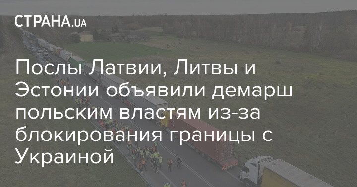 Послы Латвии, Литвы и Эстонии в Варшаве объявили демарш польским властям из-за блокирования перевозчиками польско-украинской границы. Они заявили, что это подрывает способность Украины противостоять России.