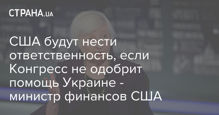 США будут нести ответственность, если Конгресс не одобрит помощь Украине - министр финансов США
