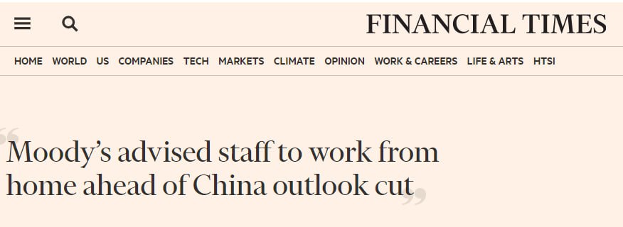 Один из собеседников издания уточнил, что сотрудникам Moody's в Гонконге посоветовали временно избегать поездок на материковую часть Китая.