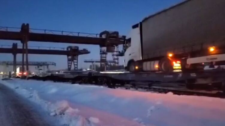 В сети уже появилось видео погрузки фур на платформы поезда, который доставит их через польскую границу в Украину.