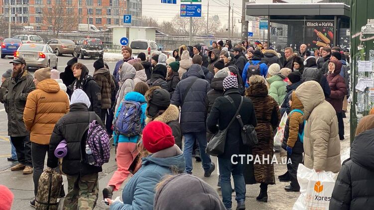 На автобусных остановках Киева возле станций метро, которые не работают со вчерашнего дня, появились огромные очереди людей, которые ждут общественный транспорт.