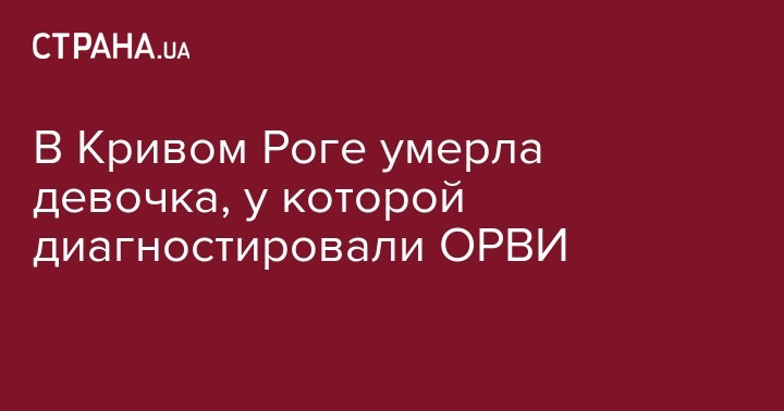 В Кривом Роге умерла 8-летняя девочка, у которой был диагностирован ОРВИ. Об этом сообщает "Радио Свобода" со ссылкой на городское управление полиции.