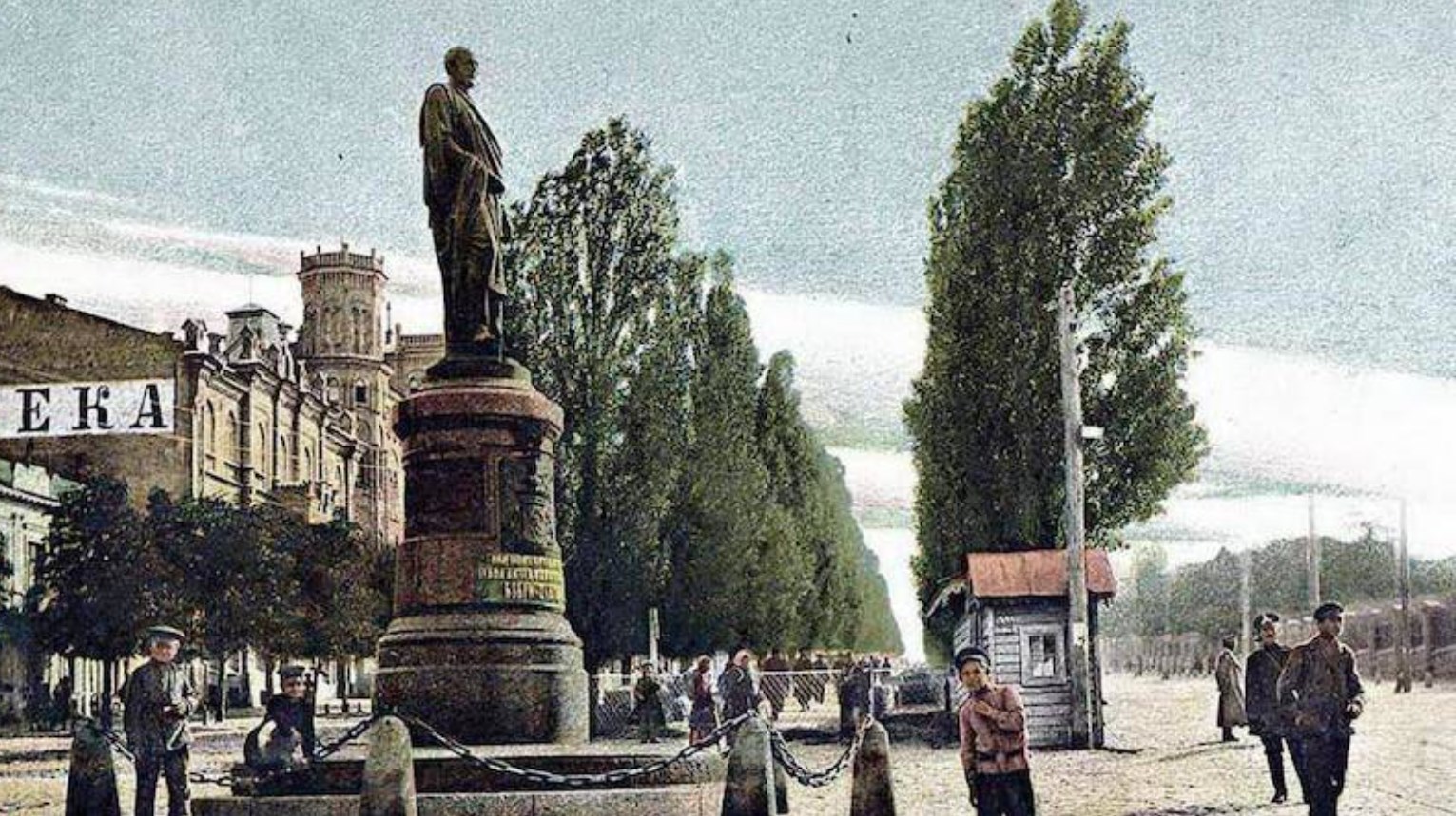 До революции на этом же месте стоял памятник графу Бобринскому, который строил в Киеве железную дорогу.