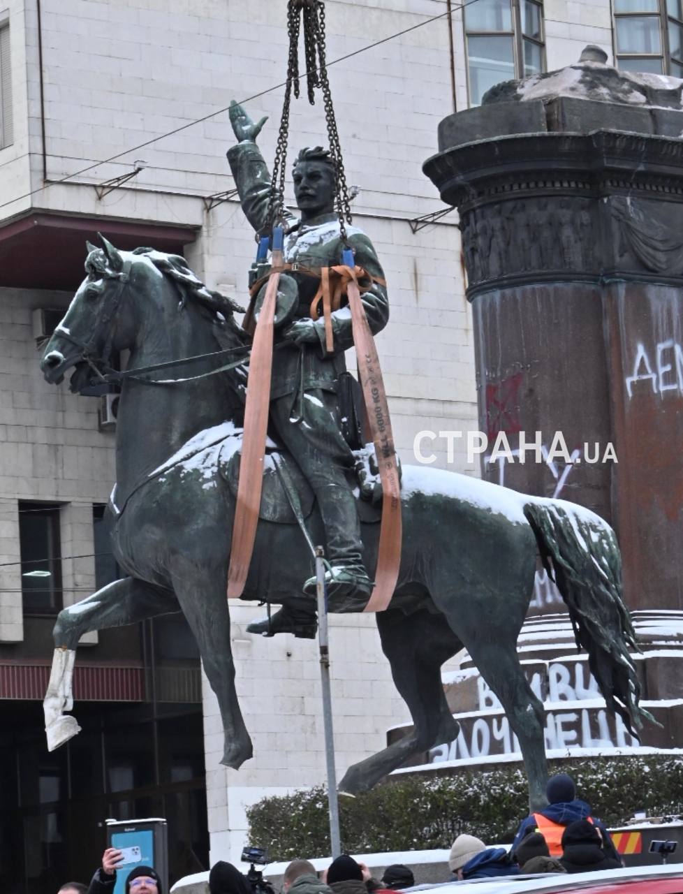 В Киеве сегодня с утра начался демонтаж памятника Щорсу - одного из старейших монументов советской эпохи в столице. В апреле ему бы исполнилось 70 лет.
