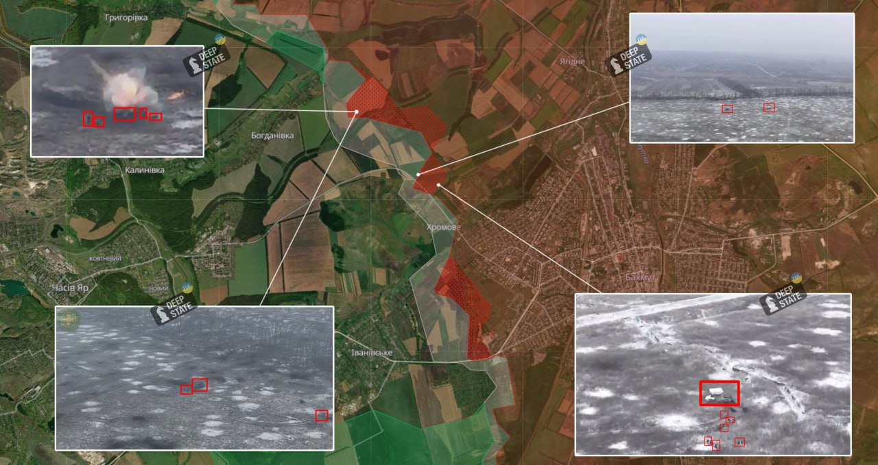 Телеграм-каналы РФ сообщают также о боях в направлении Григоровки и на северо-запад к Орехово-Василевке. Также они пишут о попытках охвата Клещеевки к югу от Бахмута, а также бои там за одну из ключевых высот.