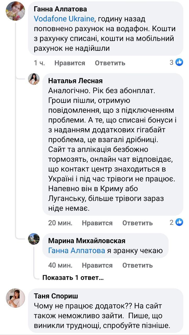 Vodafone заявил, что у них наблюдается всплеск активности из-за падения сети "Киевстара", и система не выдержала.