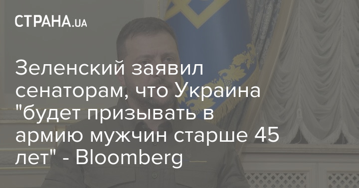 Зеленский заявил сенаторам, что Украина "будет призывать в армию мужчин старше 45 лет" - Bloomberg