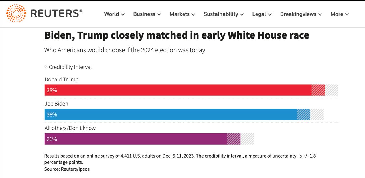 Последний опрос показал, что экс-президент США Дональд Трамп опережает президента США Джо Байдена на 2% в очном противостоянии, но в целом американцы хотели бы выбирать из других кандидатов.