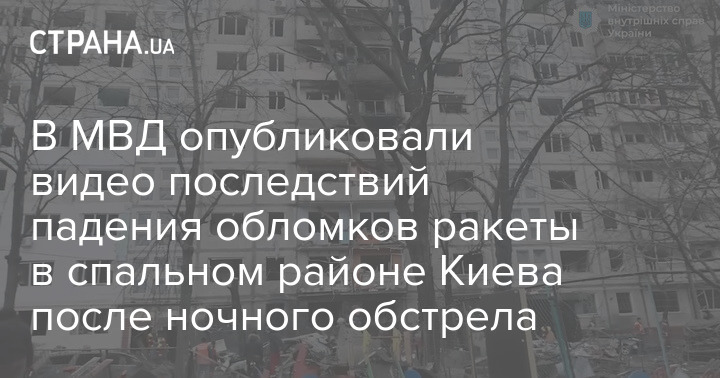 В МВД опубликовали видео последствий падения обломков ракеты в спальном районе Киева после ночного обстрела