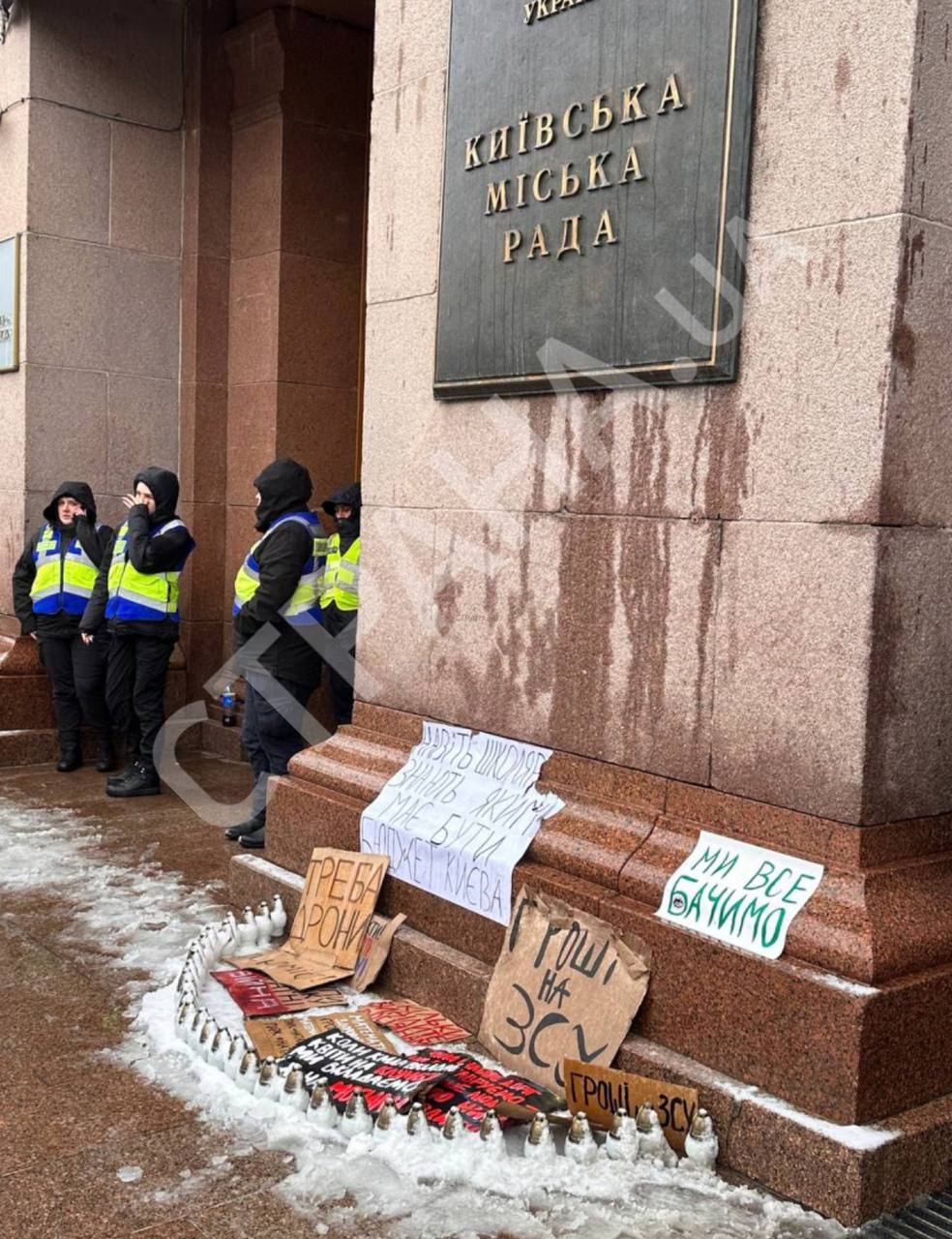 Под стенами Киевсовета сегодня прошел очередной митинг с требованием к властям столицы тратить деньги на ВСУ, а не брусчатку и прочее городское благоустройство.