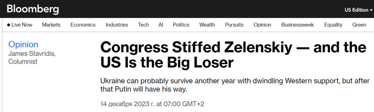 Если Запад сохранит свою поддержку Украине, в чем Ставридис не уверен, "шансы на раунд значимых мирных переговоров через год резко возрастут".
