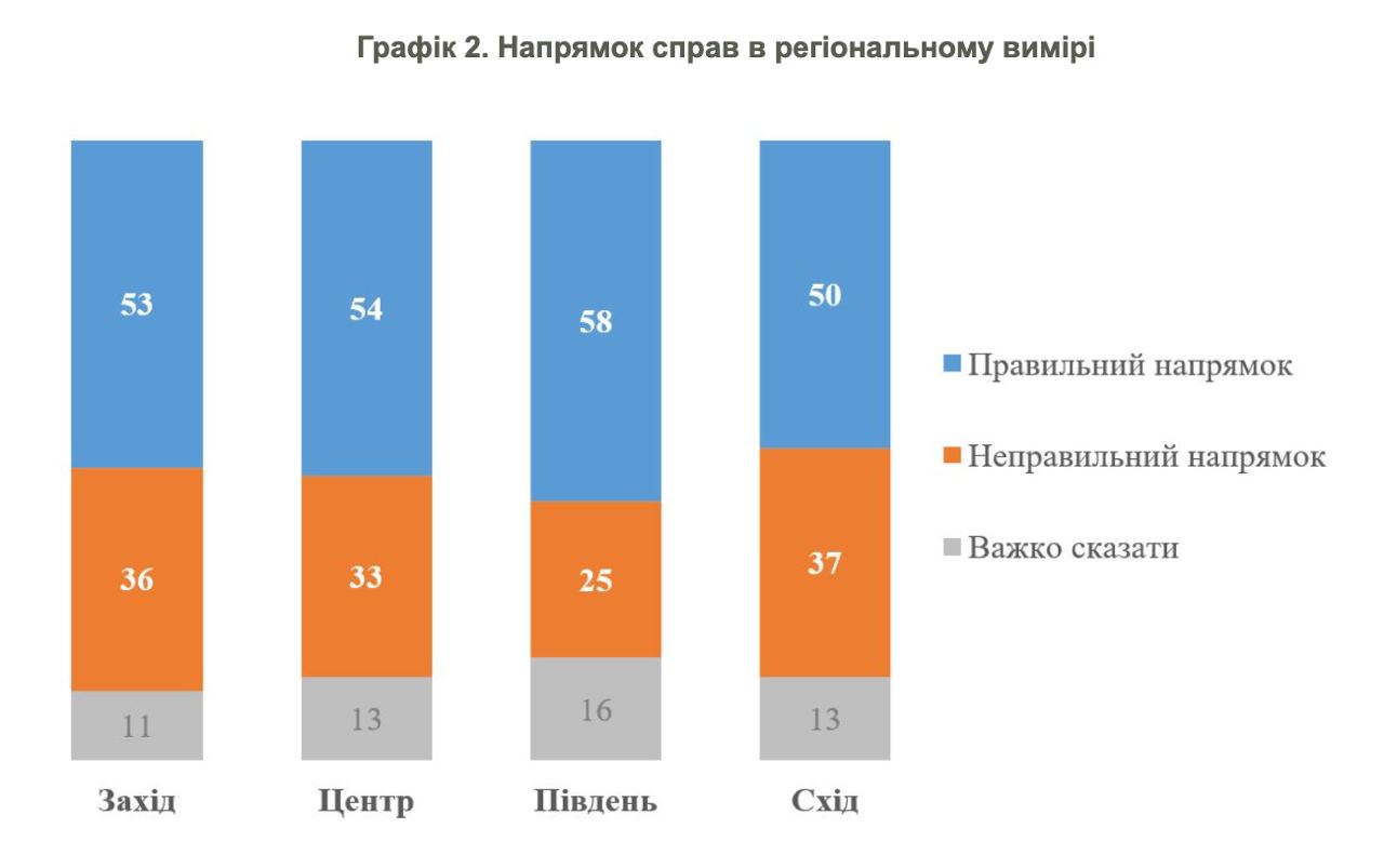 Доля тех, для кого события развиваются в неправильном направлении, выше всего на востоке Украины (37%).