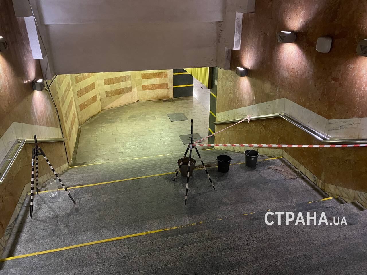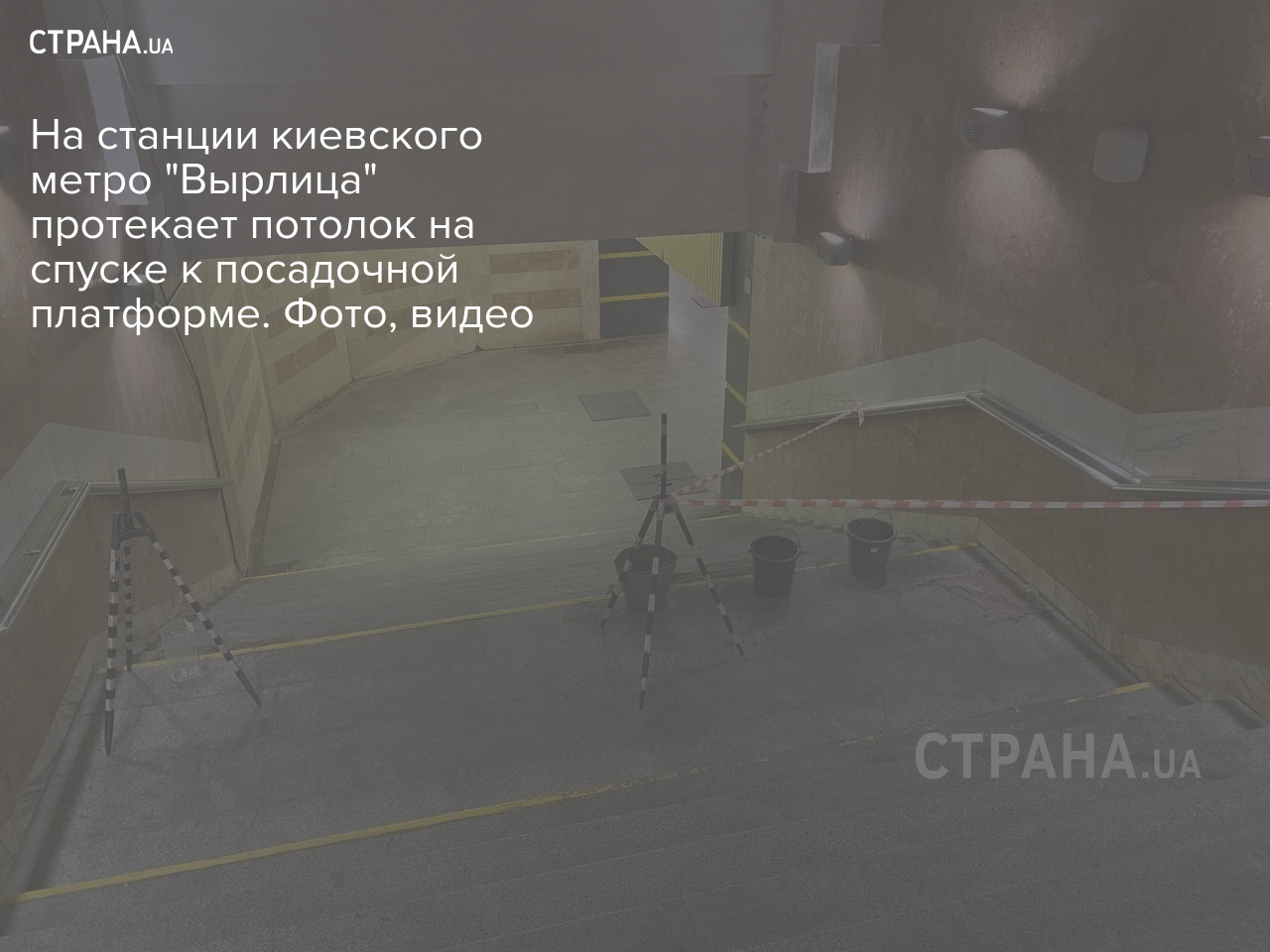 На станции киевского метро "Вырлица" протекает потолок на спуске к посадочной платформе. Фото, видео
