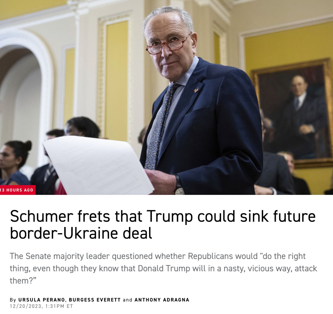 "Они знают, что это правильно - передать помощь Украине. И они знают, что нам нужно что-то сделать на границе. И мы готовы встретить их на приличной части пути. Но у них также есть призрак Дональда Трампа", - считает Шумер.
