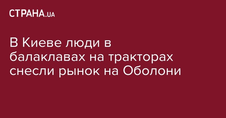 В Киеве люди в балаклавах на тракторах снесли рынок на Оболони