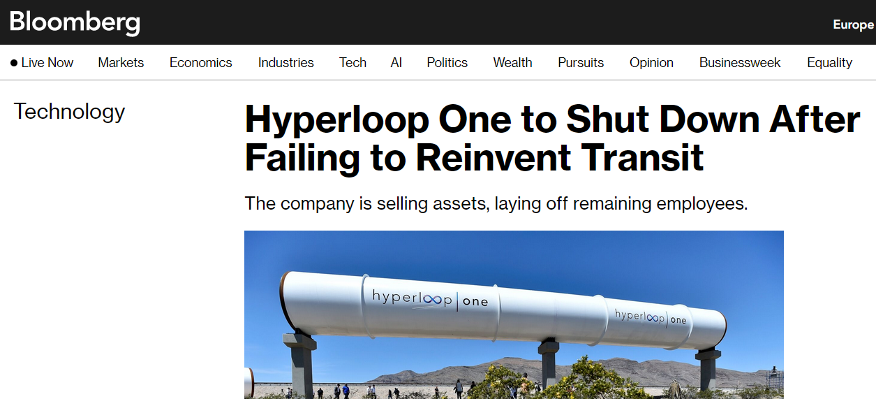 Компания Hyperloop One, которая строила вакуумные поезда по идее американского бизнесмена Илона Маска, закрывается.
